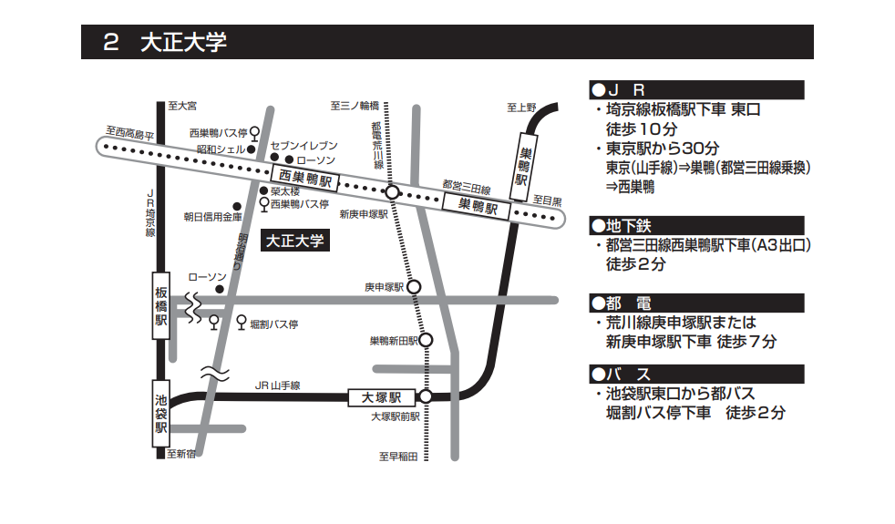 | 東京都 | 大正大学 東京都豊島区西巣鴨3-20-1 |