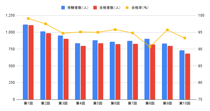 | 回数 | 合格率(%) | 受験者数(人) | 合格者数(人) |